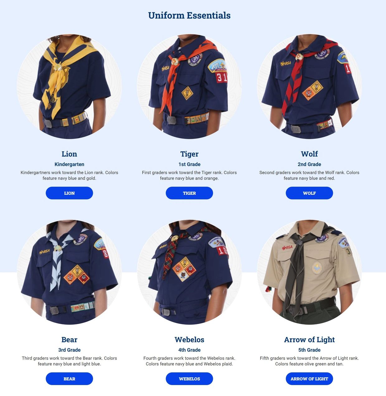 Wearing the uniform is a cherished tradition in Scouting that gives every youth a sense of team spirit and belonging. It represents their commitment to the values of the pack and their den. We ask that all scouts wear the official uniform (which is the same for girls and boys) to all den meetings, pack meetings, and special events. Uniforms are available for purchase at your local Scout shop or through our online store. Cub Scout Collection | Scout Shop